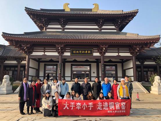 组织“大手牵小手,走进铜官窑”离退休教职工党支部与学生志愿服务共建活动。