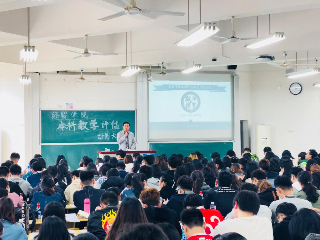 在财院校区第二教学楼501召开本科教学评估动员大会,到会的嘉宾有五楼自拍