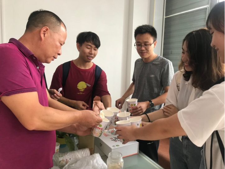 为进一步了解产业链的中小企业端,团队成员走访了三家规模较大的甜酒个体户作坊,他们分别是“长乐缘甜酒”、“长乐玉昆甜酒”和“余氏长乐佳甜酒”,这三家甜酒手工作坊甜酒年销售收入均在10万元以上,且具有较强的市场发展潜力,近年来长乐甜酒销量销量不断走高,产值也不断增长,未来甜酒市场的前景非常可观。在销售品牌化、个性化方面,团队小组纷纷向作坊负责人提出自己见解和疑问,不少同学从电子商务、产业升级等角度建言献策。