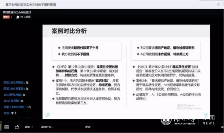 “云课堂”开展以来,她践行“将传统课堂有教师中心主义向学生中心主义转变,提升学生自主学习能力”的教学原则,她要求每个学生至少要向老师提出一个问题,引导大家主动思考。严谨细致、热情温暖,是同学们给莫老师最多的评价。没有卡顿,没有空耗,课堂效率超赞,是莫老师课堂的真实反馈。此外,她还开展课程云实践,“勇敢者的游戏”理念帮助同学们尽快掌握国际贸易实务的知识,邀请外贸企业和海关的老师们走进课堂和同学们交流,获得学生的一致好评。