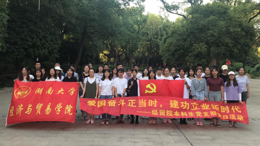 经济1902班和国贸1902班的同学来到橘子洲头,以青春之名向祖国告白。经济1902班全体同学在毛主席头像前诵读《沁园春·长沙》,面对湘江切身处地感受伟人当时的复杂心绪。国贸1902班同学则创新活动形式,鼓励同学以“五个人 三颗心”为主题拍照留念,在“湖南母亲河”湘江前表达对祖国的告白。