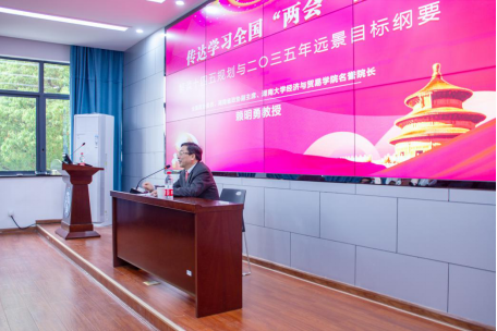 邀请全国政协委员、湖南省政协副主席赖明勇教授来院作关于“传达学习全国“两会”精神,解读十四五规划与二Ο三五年远景目标纲要”的专题宣讲报告。会议由党委书记祝树金主持,五楼自拍