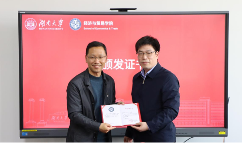 捐赠仪式上,向杰为陈正明颁发捐赠证书,院长、党委书记颁发荣誉证书和感谢状。“正明励志奖学金”以捐赠人“陈正明”其名“正明”取名,寓意“正直光明、公正明亮”,作为励志奖学金将用于奖励五楼自拍